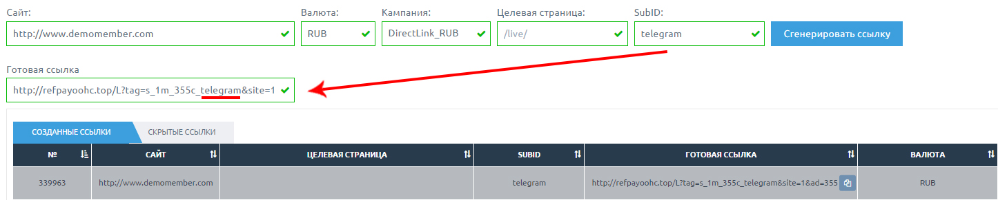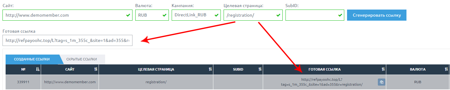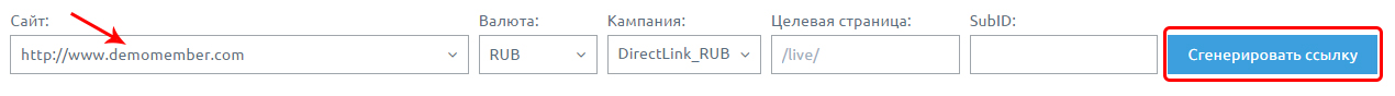 и затем вставить её в раздел "Целевая страница" и нажать "Сгенерировать ссылку".