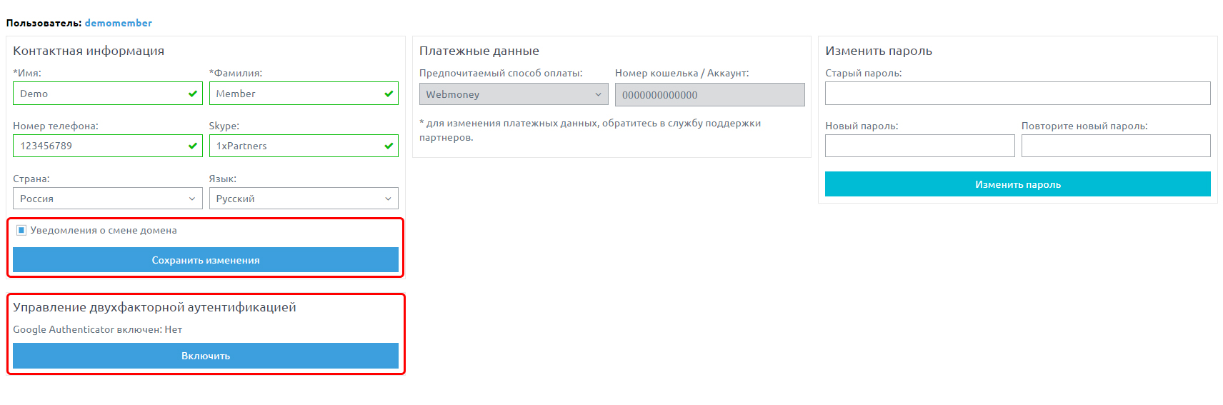 P.S.: Для примера приводятся данные с тестового аккаунта, ни к кому из партнёров они не относятся, так как все данные с партнёрского аккаунта являются коммерческой тайной и не разглашаются.