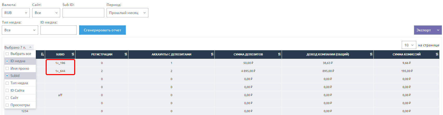 Вы можете создавать ссылку одновременно и на Целевую страницу и с SubID под отдельные сайты, всё это потом отслеживается в Отчёте по промоматериалам и помогает оценить качество трафика.